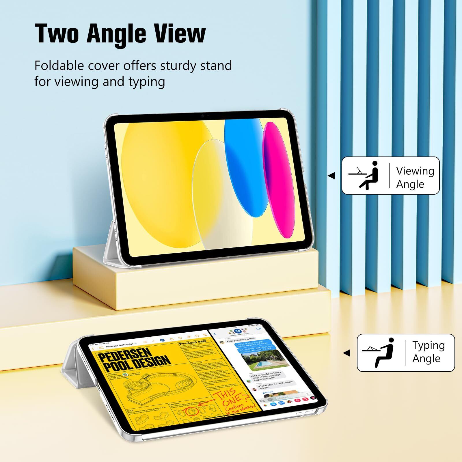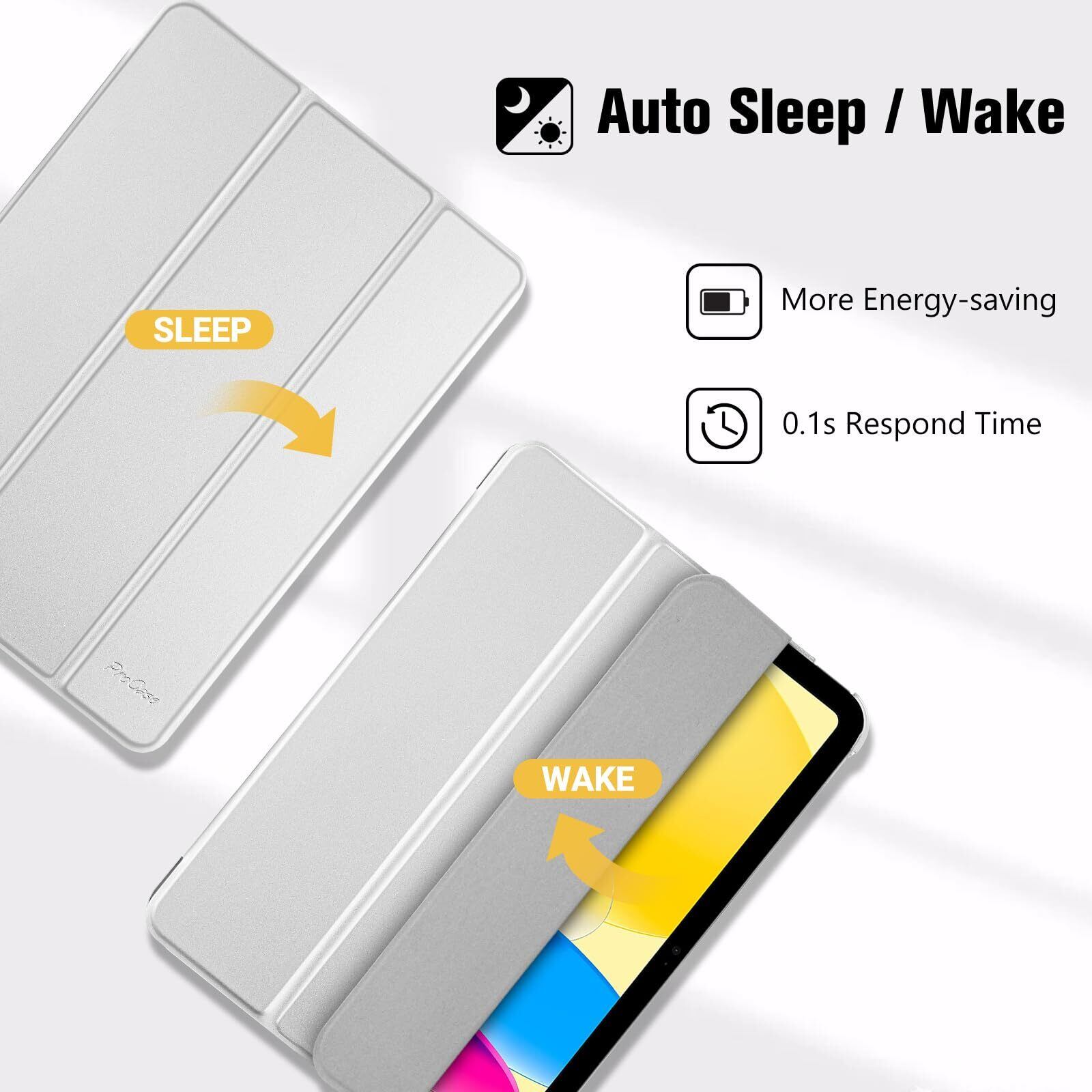 ProCase iPad 10世代 ケース 2022 10.9インチ A2696 A2757 A2777 軽量 耐衝撃 三つ折り スタンド スマートカバー(シルバー)