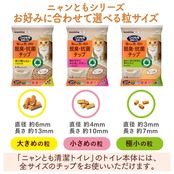 猫ちゃんの手足に挟まりにくい、飛び散らない大きめの粒です。砂かきしてもトイレの外に出にくくお掃除ラクラク。