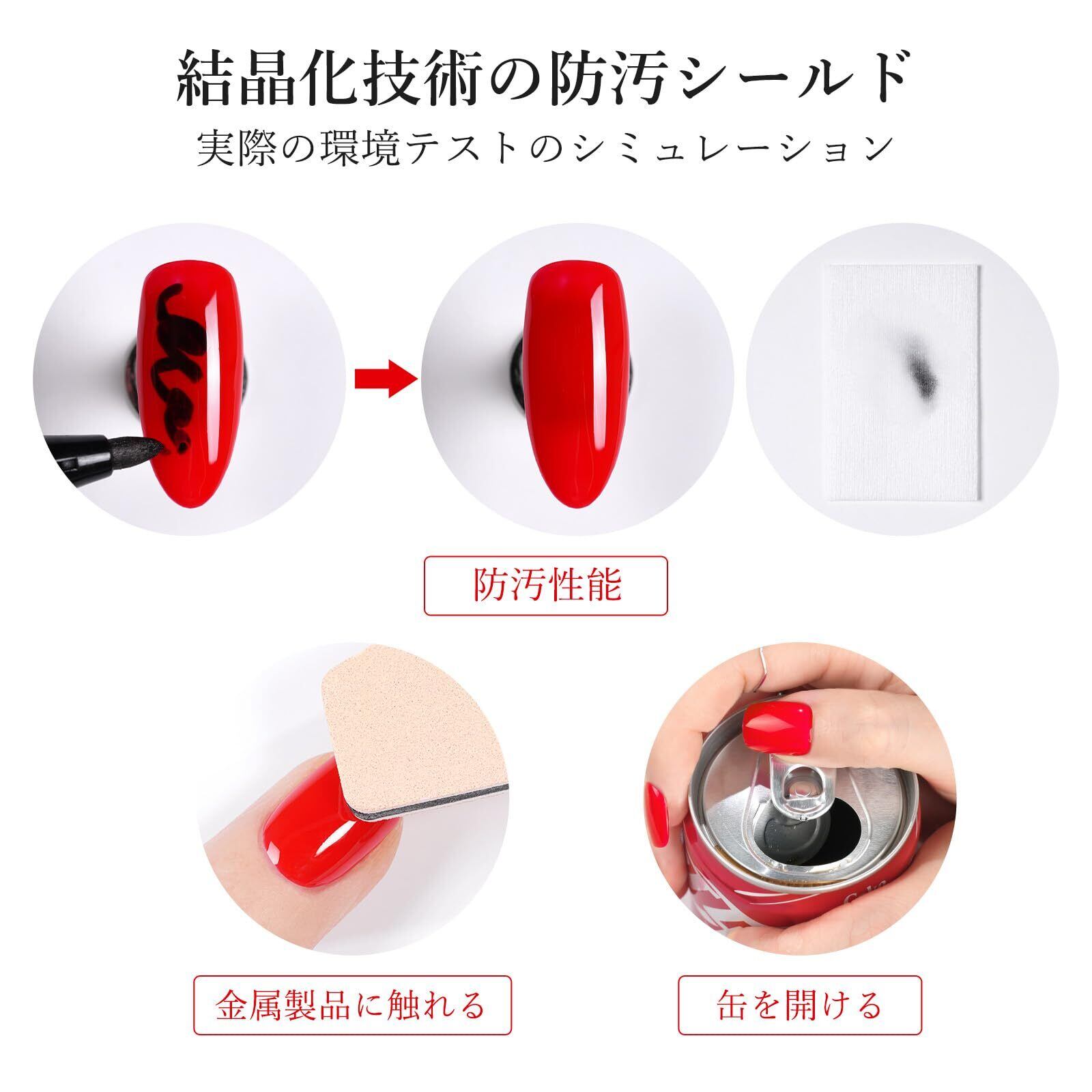 【28日以上長持ち】ネイルとカラージェルの密着性を高め、ネイル表面を保護し、ジェルが剥がれにくくし、適切なステップに従って、輝くツヤが最長4週間以上持続できます。(爪の表面を磨くと、ネイルアートの持続時間が長くなります)自や肌に優しい天然レジンを使用し、無毒で安心してお使いいただけます。