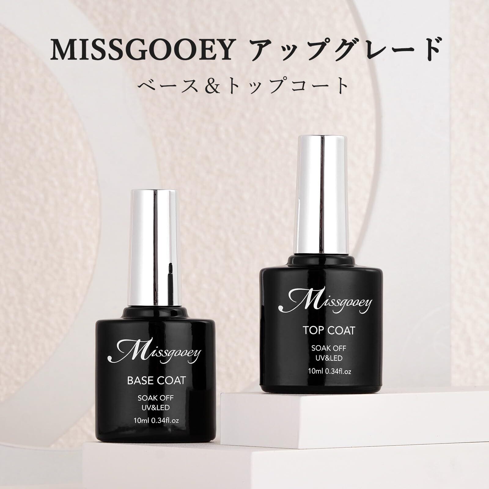 Missgooey ジェルネイル トップコート ベースコート ベースジェル ノンワイプ UV/LED対応 10ml 2本セット 拭き取り不要