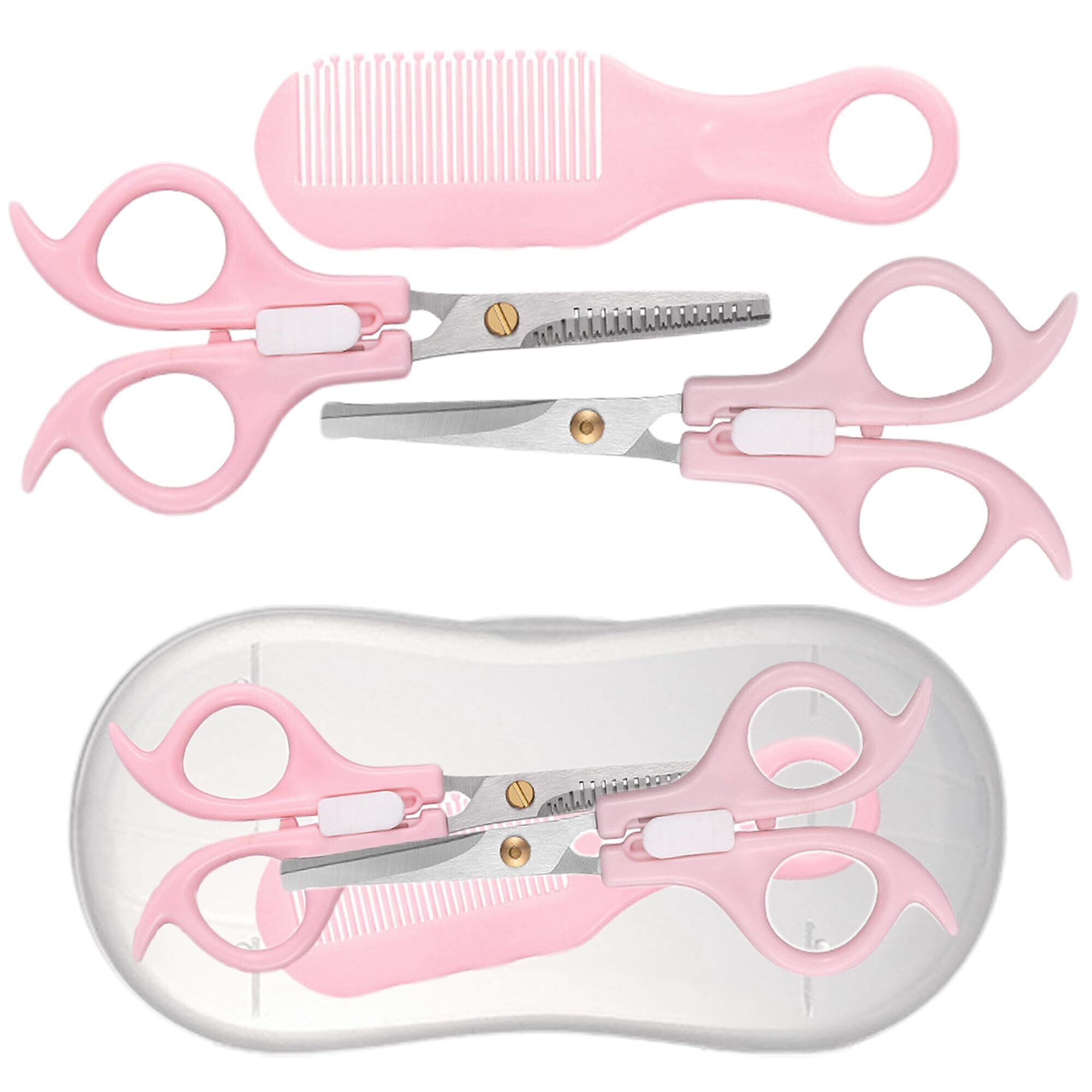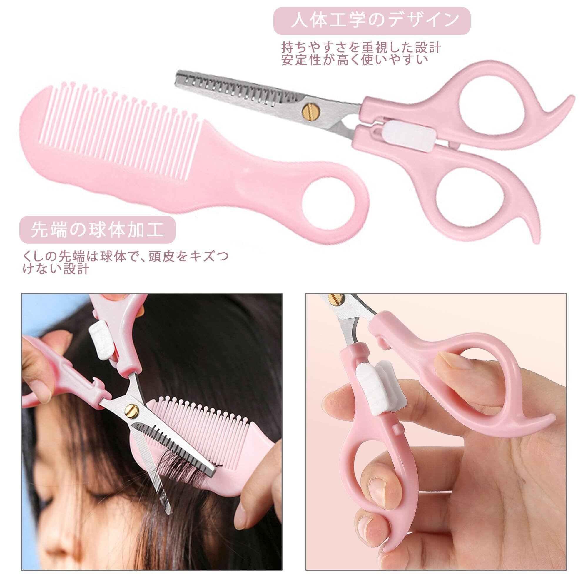 DELUXEFOX 散髪 はさみ 子供 すきばさみ 3本セット セルフカット 安全なロック付き ハサミ フラットシザース ドットコーム 髪切りはさみ クッションくし 家庭用 赤ちゃん ベビー用 収納ボックス付属 (ピンク)
