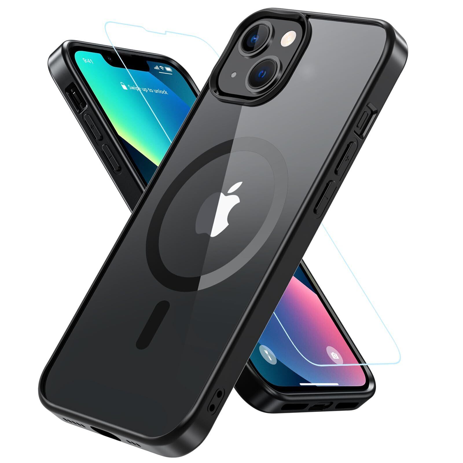 iPhone13 ケース iPhone14 ケース BESINPO 【ガラスフィルム付き・MagSafe対応】 マグネット搭載 黄ばみなし アイフォン13ケース 米軍MIL規格 耐衝撃 耐久性 いphone14 カバー マグセーフ対応 ストラップホール付き iPhone 13/14 用ケース 6.1インチ ブラック+クリア