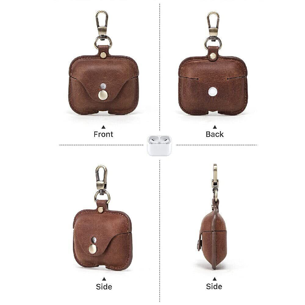 Pop Frog airpods レザーケース airpods pro ケース レザー イヤホン proケース 革 本革 おしゃれ エアポッツ エアポッズ ケース イヤホンケース フック付き アップル カバー ワイヤレス充電 イヤホンカバー エアーポッツ ケース ギフト プレゼント 誕生日 (ブラウン)