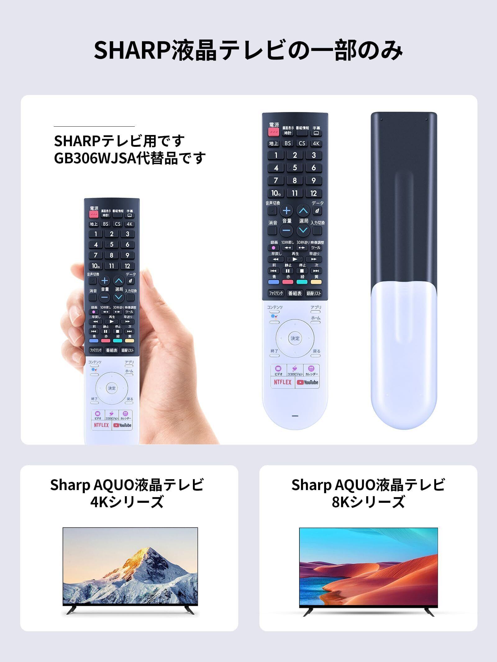 AVTVA GB320SA GB306SA 交換用リモコン for シャープ SHARP-AQUOS 音声認識機能付き 液晶テレビ専用 4K/8Kテレビ 4T-C40BJ1 4T-C45BL1 4T-C45BN1 4T-C50BL1 4T-C50BN1 4T-C55BL1 4T-C60BN1 4T-C70BN1 8T-C60BW1 8T-C70BW1対応 (0106380577)