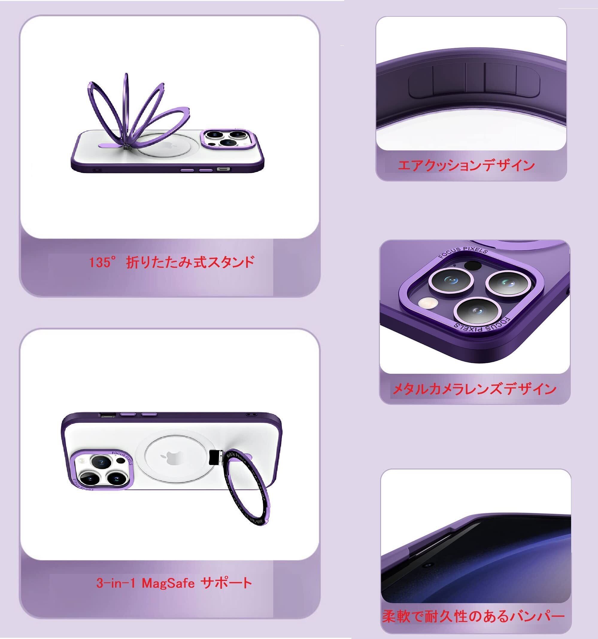 【優良な素材・黄変防止】高級感のポリカーボネイトを採用し、指で触れた瞬間に赤ちゃんのお肌のようにサラサラして快適です。側面を柔らかい"高純度、高密度化されたTPU"のソフトな素材で衝撃を吸収させ、吸収性能が優れ、傷から守ります。こう言う革新浸透テクノロジーで、黄変防止を実現。MagSafe対応の強力マグネットはその安全性と性能により安定した充電と付着力を発揮します。