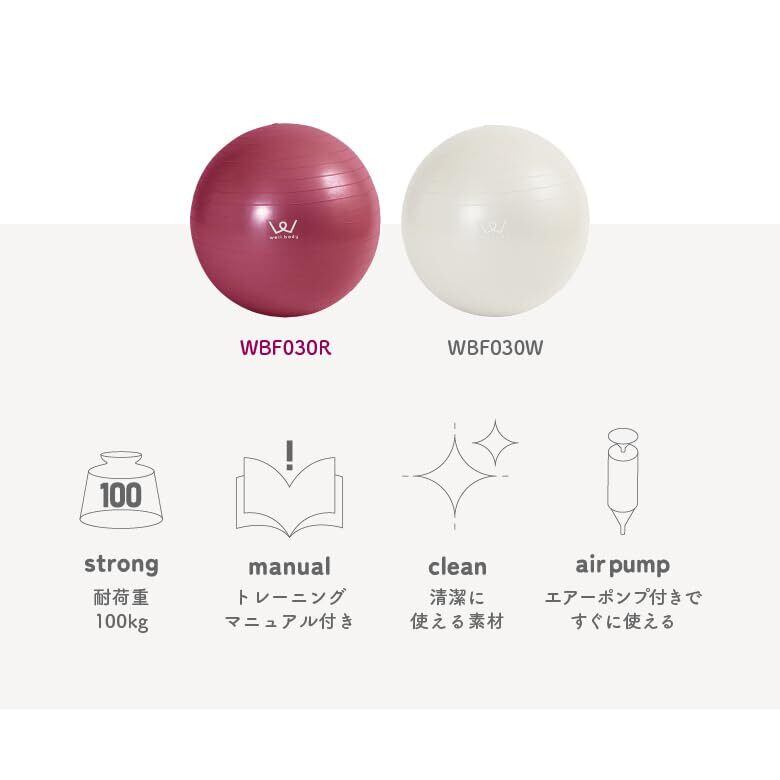 【商品仕様】本体サイズ:幅30×奥行30×高さ30cm[直径 最大30cmタイプ]/重量:0.6kg/耐荷重:100㎏/材質:PVC(ポリ塩化ビニル)、PP(ポリプロピレン)/付属品:エアーポンプ、専用キャップ、キャップ取り外し工具、運動マニュアル/カラー:ホワイト
