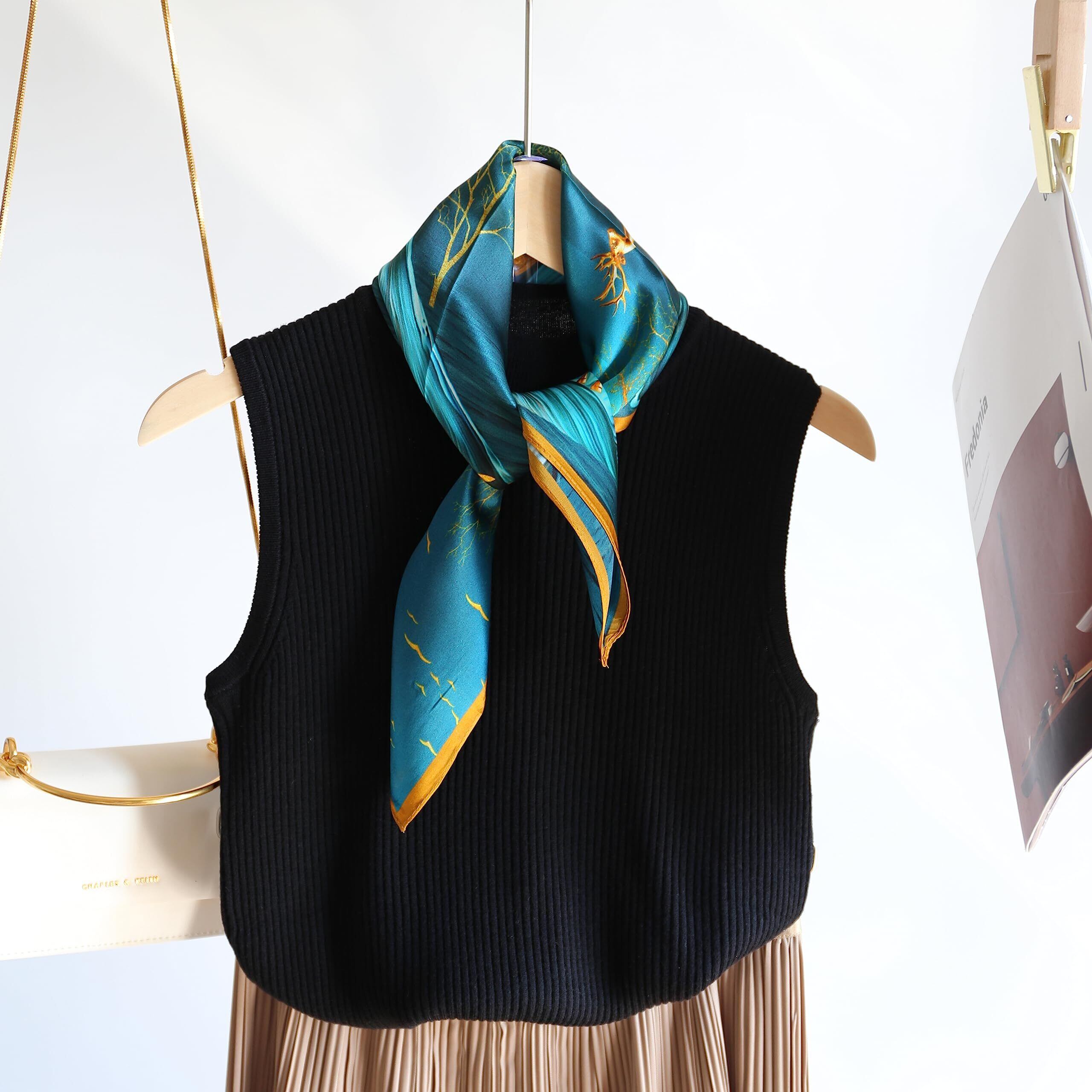 [BRMM MIA] 100% シルク 53cm 正方形レディース スカーフ 通勤 トオフィススカーフ ハンカチ スカーフシルク バレンタインギフト