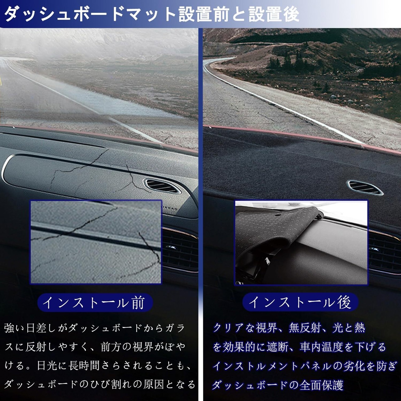 【劣化防止】ダッシュボードは常に直射日光にさらされているとダメージを受けやすい。ダッシュボードマットを使用すれば、紫外線からダッシュボードを守ることができる。ダッシュボードの割れ、硬化、変色、色あせ、劣化防止。 また、ダッシュボードがすでに受けてしまったダメージを隠す効果もあります。