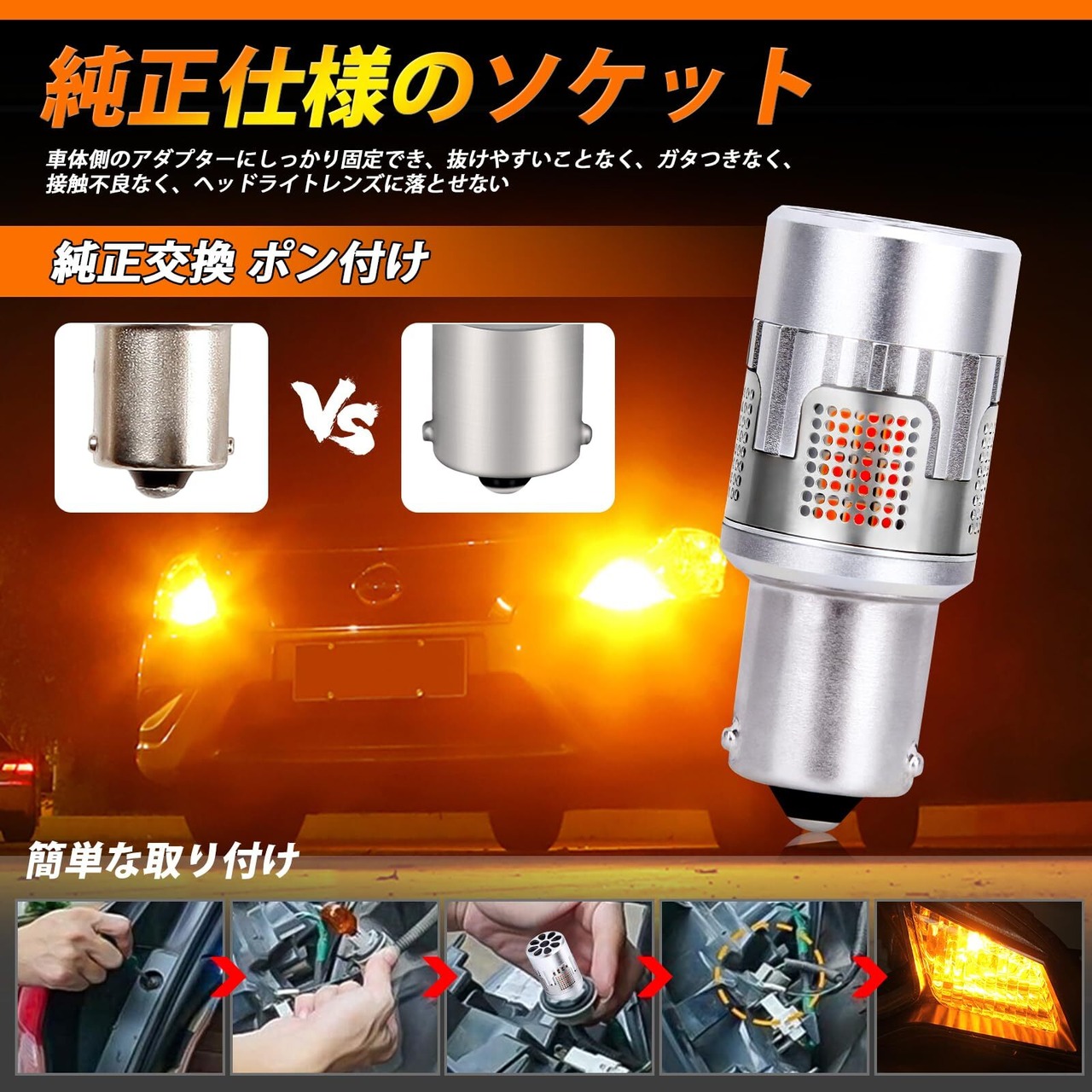 S25 純正アンバー 最適な明るさ: 当該LEDウィンカーは高品質のLEDチップを搭載していて、濃過ぎず薄くもない最適なアンバー色は綺麗に点滅していて、純正より一目瞭然の明るさも実現、車検対応可能です。また、当該バルブのトップにLEDチップが搭載してなく、反射のみで照らされているので、他車に差し込むような強列な光は抑えられています、他車へ迷惑をかけません。
