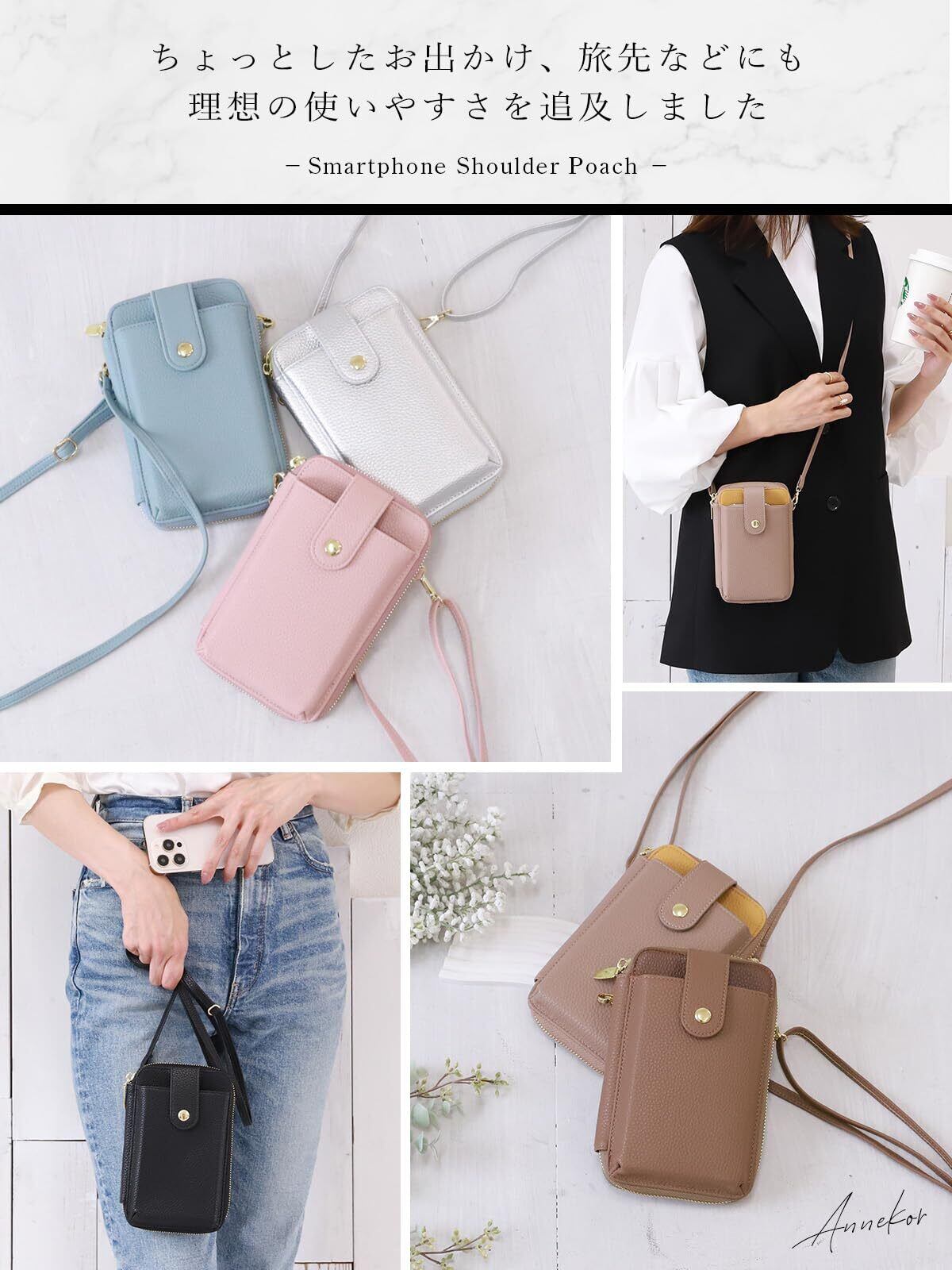 【ちょっとのお出かけに便利なスマホポーチ】Annekorのスマホポーチ・スマホポシェットはちょっとしたお出かけに便利な機能性抜群のポーチです。スマホや小物の収納はもちろんお札や領収書、カードも入れられてお財布・カードケース代わりにもなり、これ一つで身軽にお出かけが出来ます。旅行用のサブバックとしてもおすすめ。
