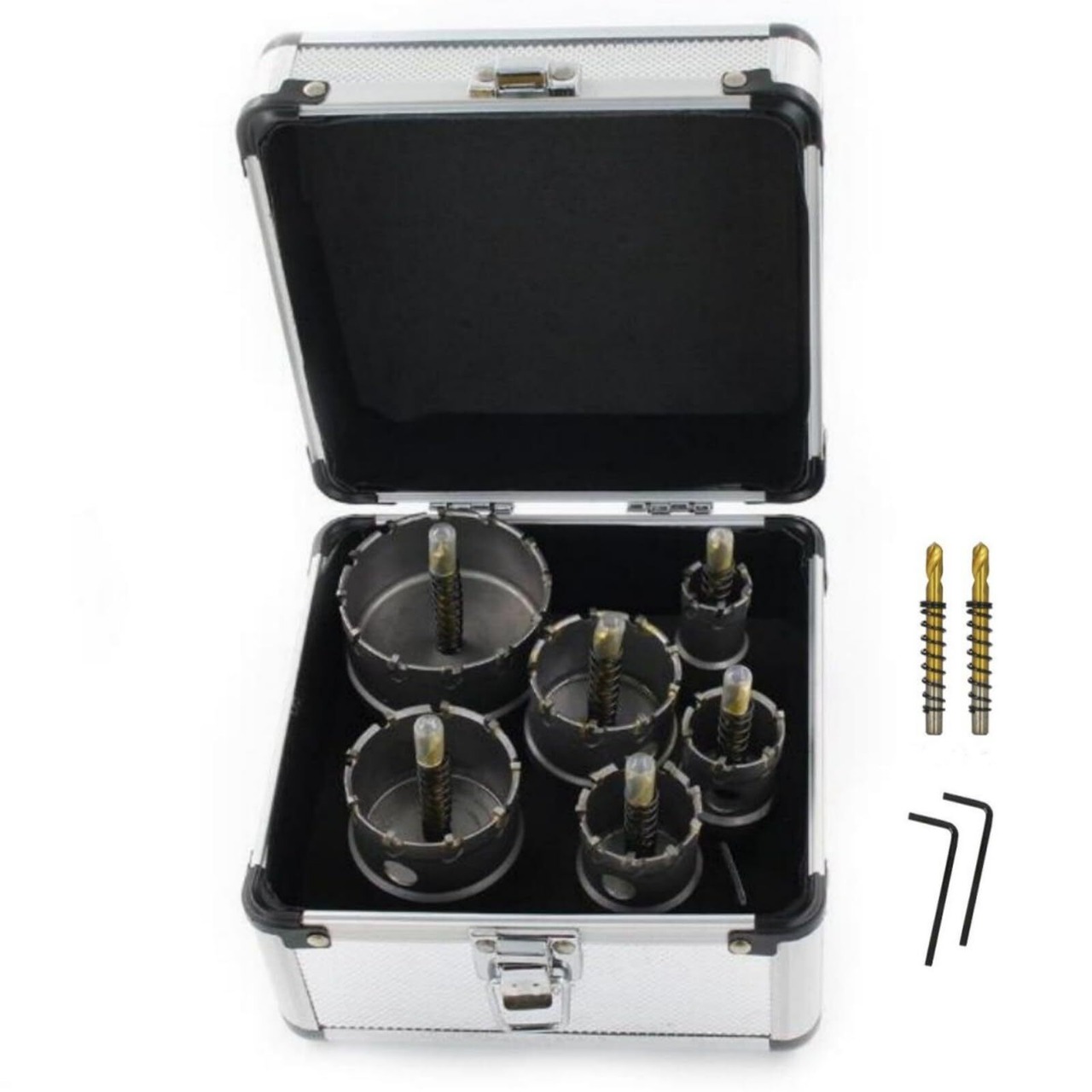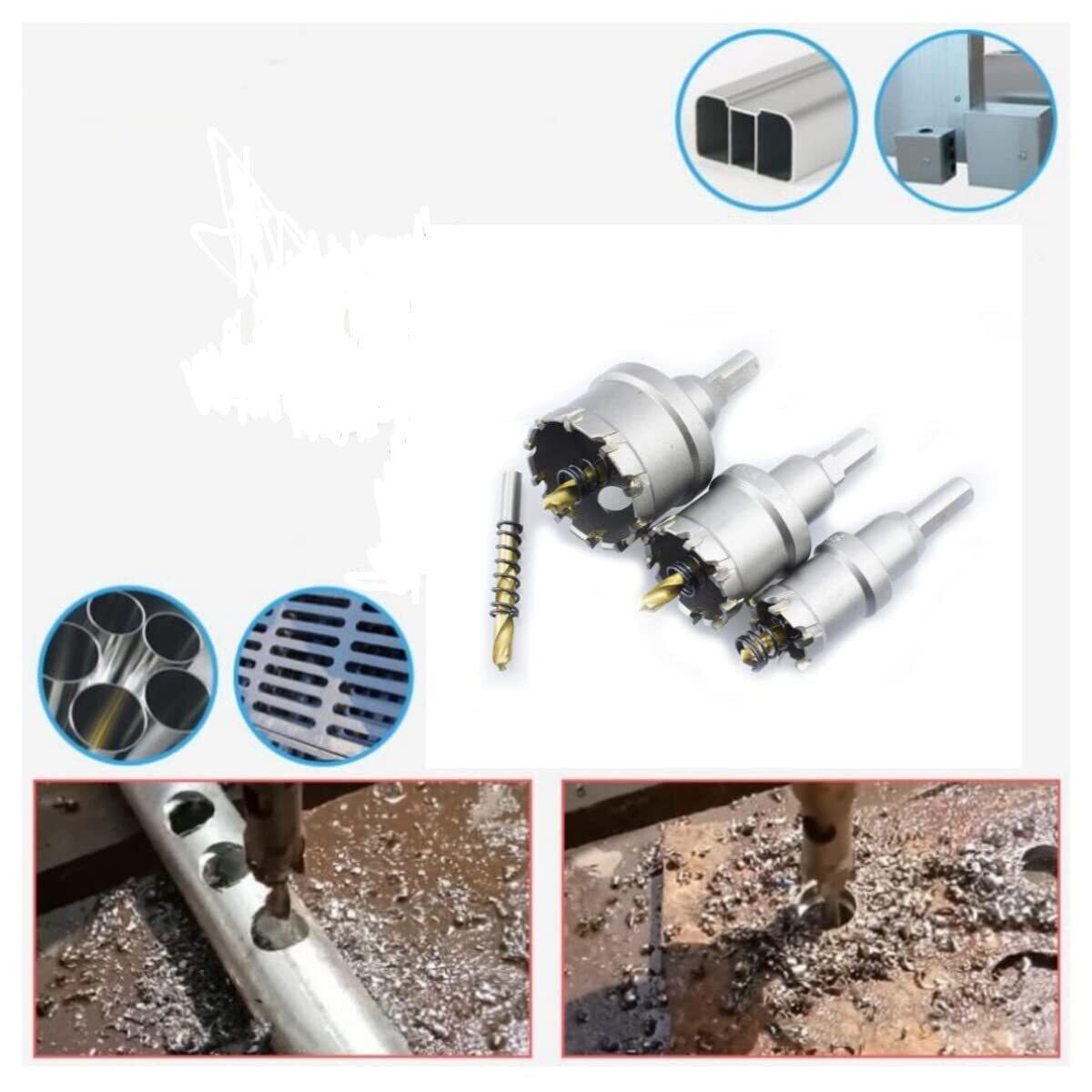 超硬 ホールソー ホールカッター ステンレス 鉄 金属 穴あけ タングステン合金チップ 電動ドリル ホルソ ホールソー セット 6本 ホールソーセット 鉄鋼用(22-65mm) (6)