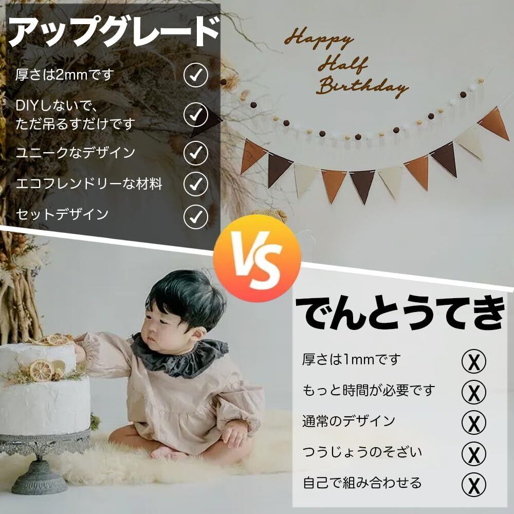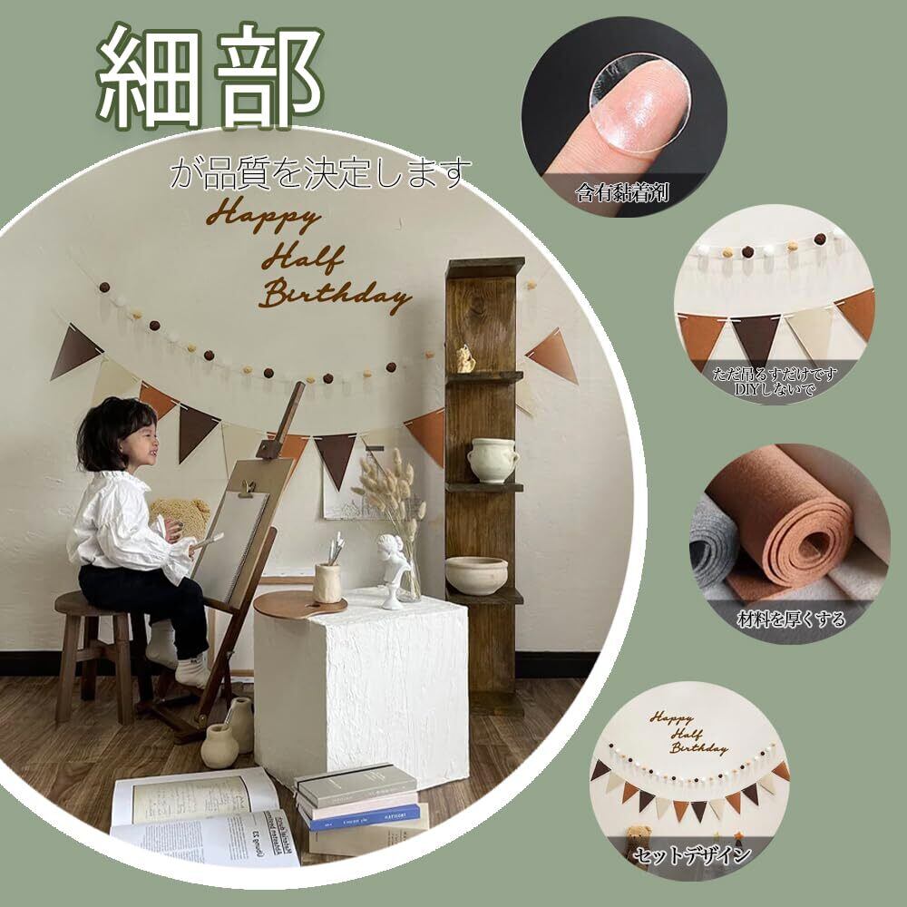 充実のセット内容 ハーフバースデーhappy half birthdayフェルト生地バナーx1、160cm フェルト生地フラッグガーランドx1、250cm フグボールガーランドx1。質が高いですので、きちんと保存すれば、後にも持続に使用でき、コスパが高いです。