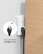 【干渉しない・スイングプラグ】2面にはAC差込口が4口ずつあり、間隔が広めなので、干渉することなくすっきりとしています。スイングプラグは180°回転できるので、狭いスペースでも配線しやすいです。