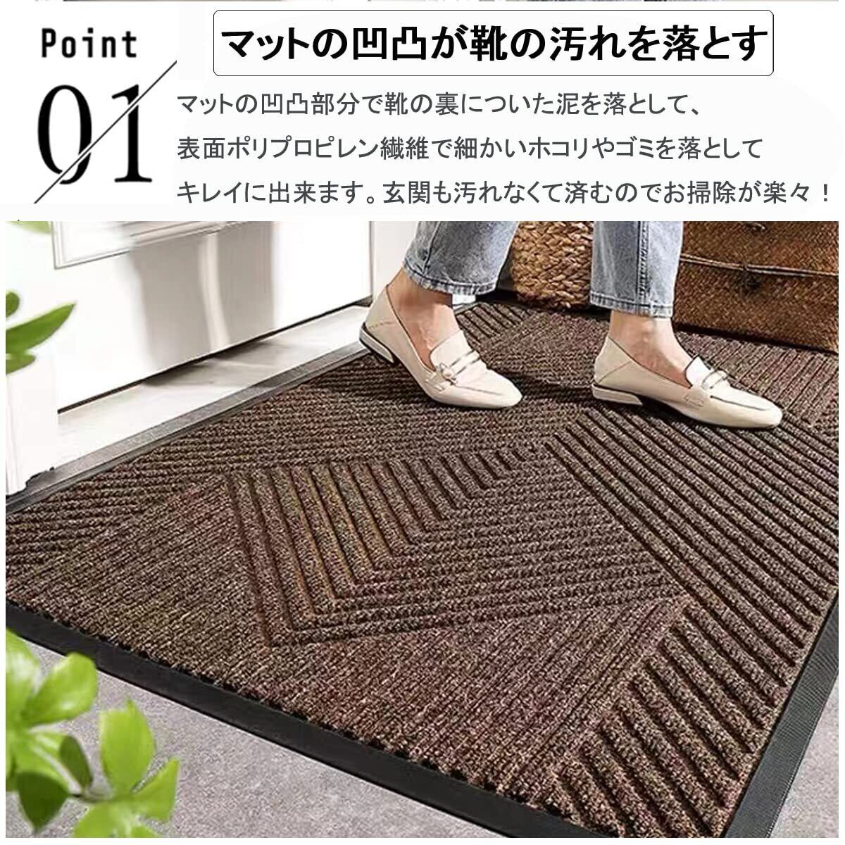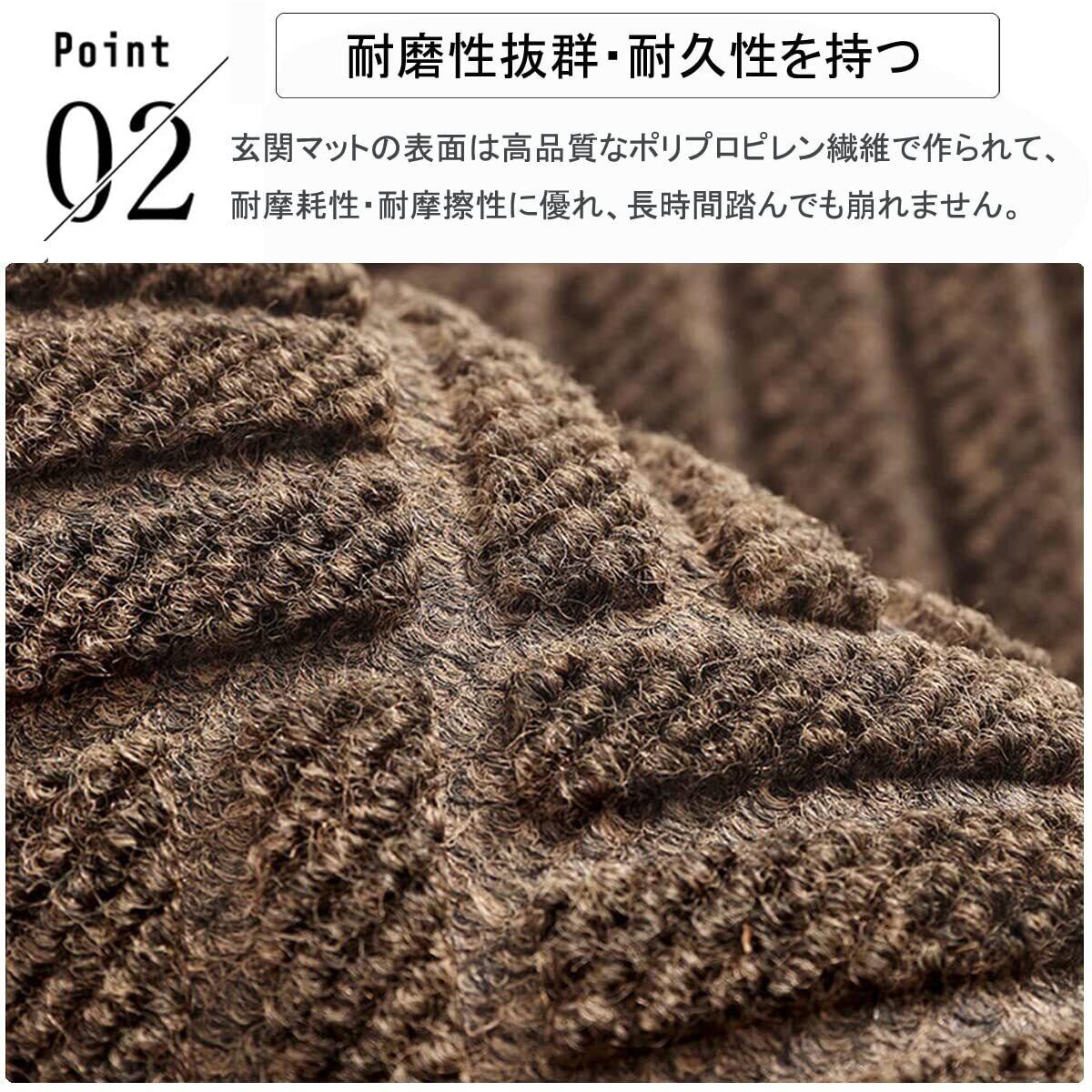 【耐磨性抜群&滑り止めマット】玄関マットは表面ポリプロピレン繊維な高品質材料で作られて、優れた強度と耐摩耗性を持っています。裏面にはしっかりと滑り止め加工が施されますので、マットのズレを防ぎます!子供とお年寄りがいるの家庭でも安心してお使いいただけます。
