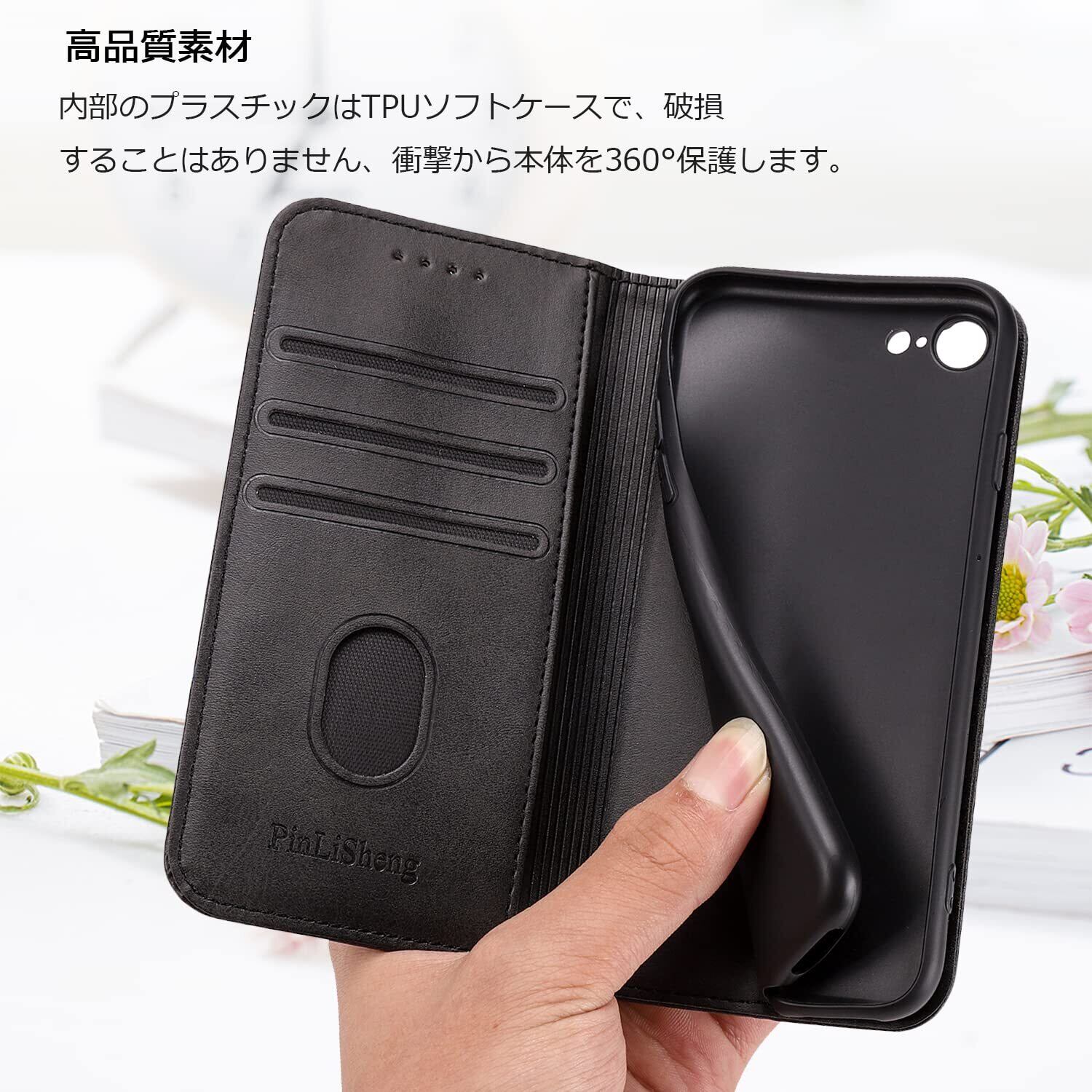 iPhone SE ケース 第2世代 第3世代 iphone8 iphone7 ケース 手帳型 スマホケース 携帯カバー PUレザー iphoneケース se カード収納ケース マグネット式 スタンド機能アイフォンse ケース4.7インチ対応 360度保護 PinLiSheng (ブラック, iPhone8 iPhone7 iPhone SE2 iPhone SE3)