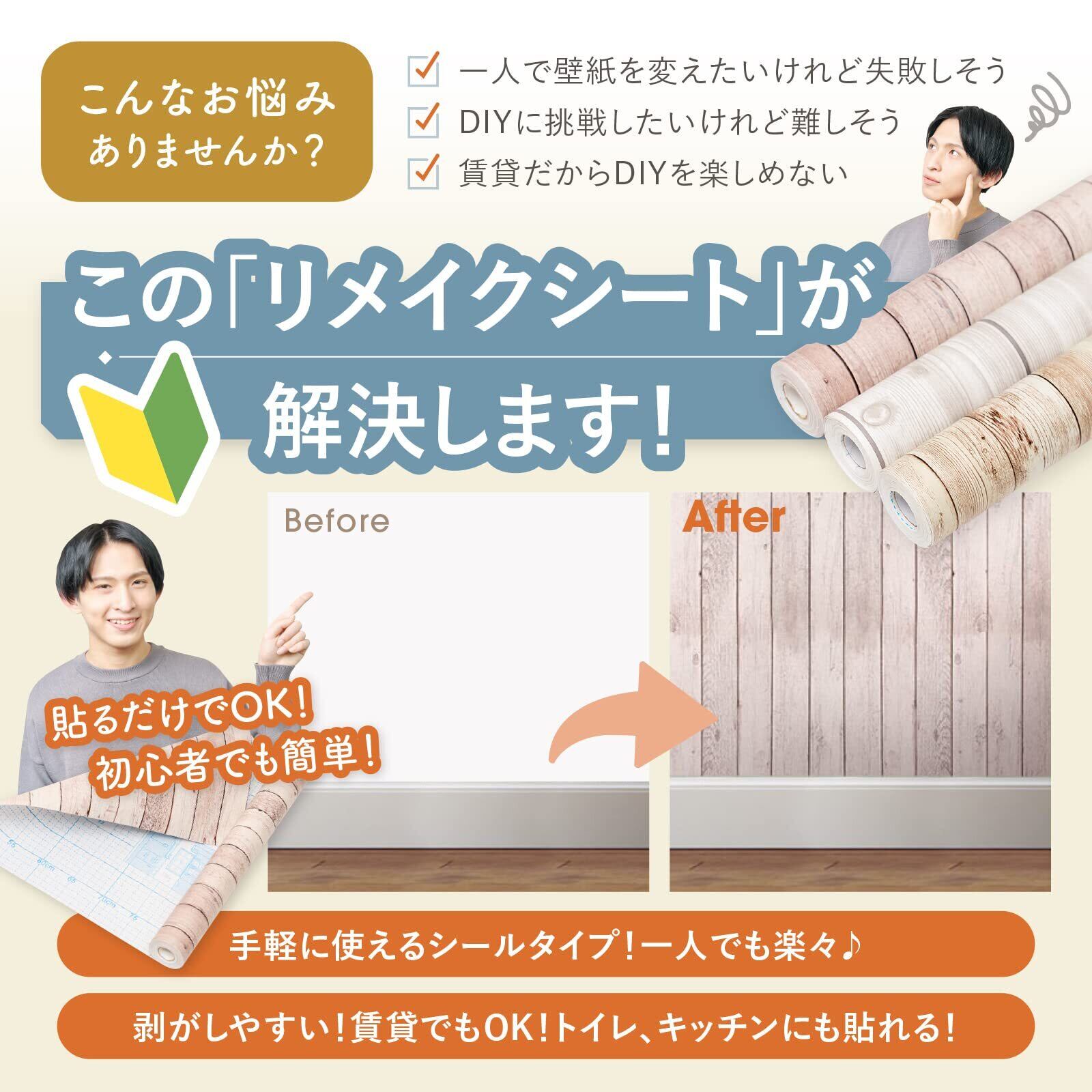 【貼りやすさ・剥がしやすさ】裏面粘着シールですので糊付け不要。台紙には方眼線があるので、ハサミ・カッターなどで簡単にまっすぐカットできます。また、剥がす際もシールなので簡単に剥がすことができ賃貸でもご利用して頂けます。 ※剥がす際はゆっくり行ってください。