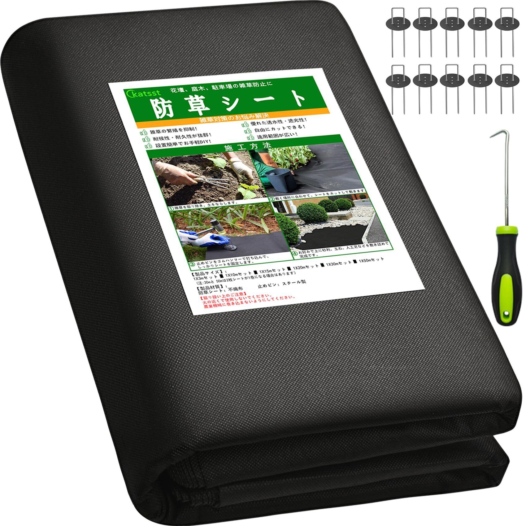 katsst 防草シート ぼうそうシート Uピン杭10本と黒丸10枚付き 1x3m 厚手 耐用年数は5年 雑草防止 除草シート ブラック (1x3m)