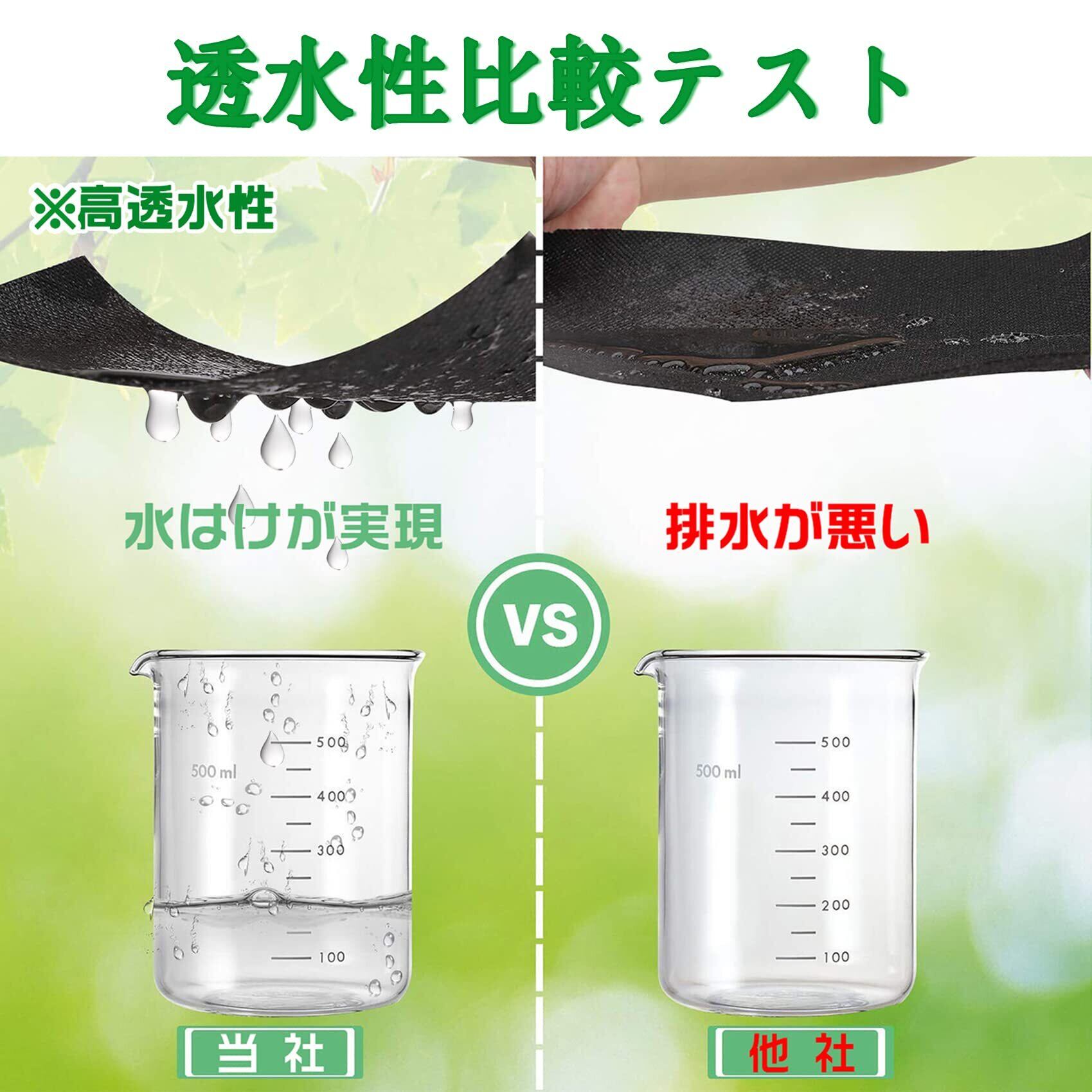 【抜群な遮光】高品質の耐候性不織布を採用して、99.11%日光を遮り、雑草を生きにくいです。光を遮ることで光合成を防ぎ、除草剤を使わずに雑草の繁殖を防止します。水や空気、液体肥料を通すので植栽もできる防草シート(雑草防止シート)です。 除草剤に頼らないため、大切な庭木や花壇などの枯らしたくない植物に影響しません。安全性の高い雑草対策です。