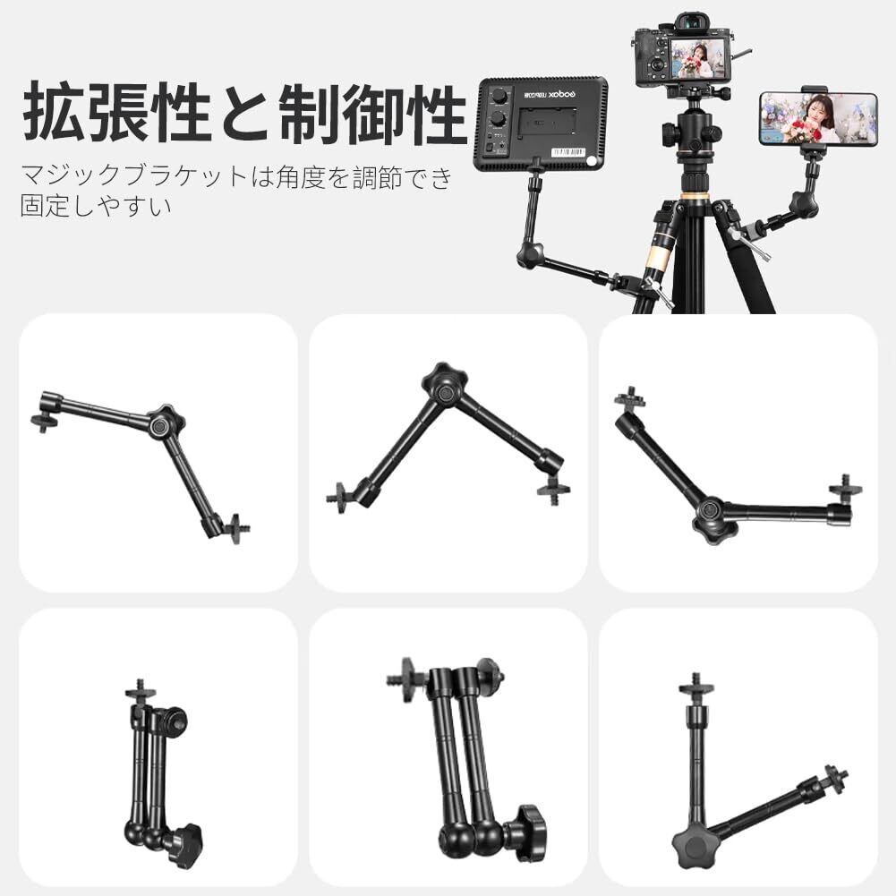 KRGNPLE マジックアーム カメラアーム 11インチ スーパークランプ 俯瞰撮影 Webカメラ アームスタンド 雲台/撮影 照明機材 固定 デスク アーム ベストアングル アクションカメラ プロジェクター ウェブカメラ ビデオ ストロボ に対応(カラー:黒い)