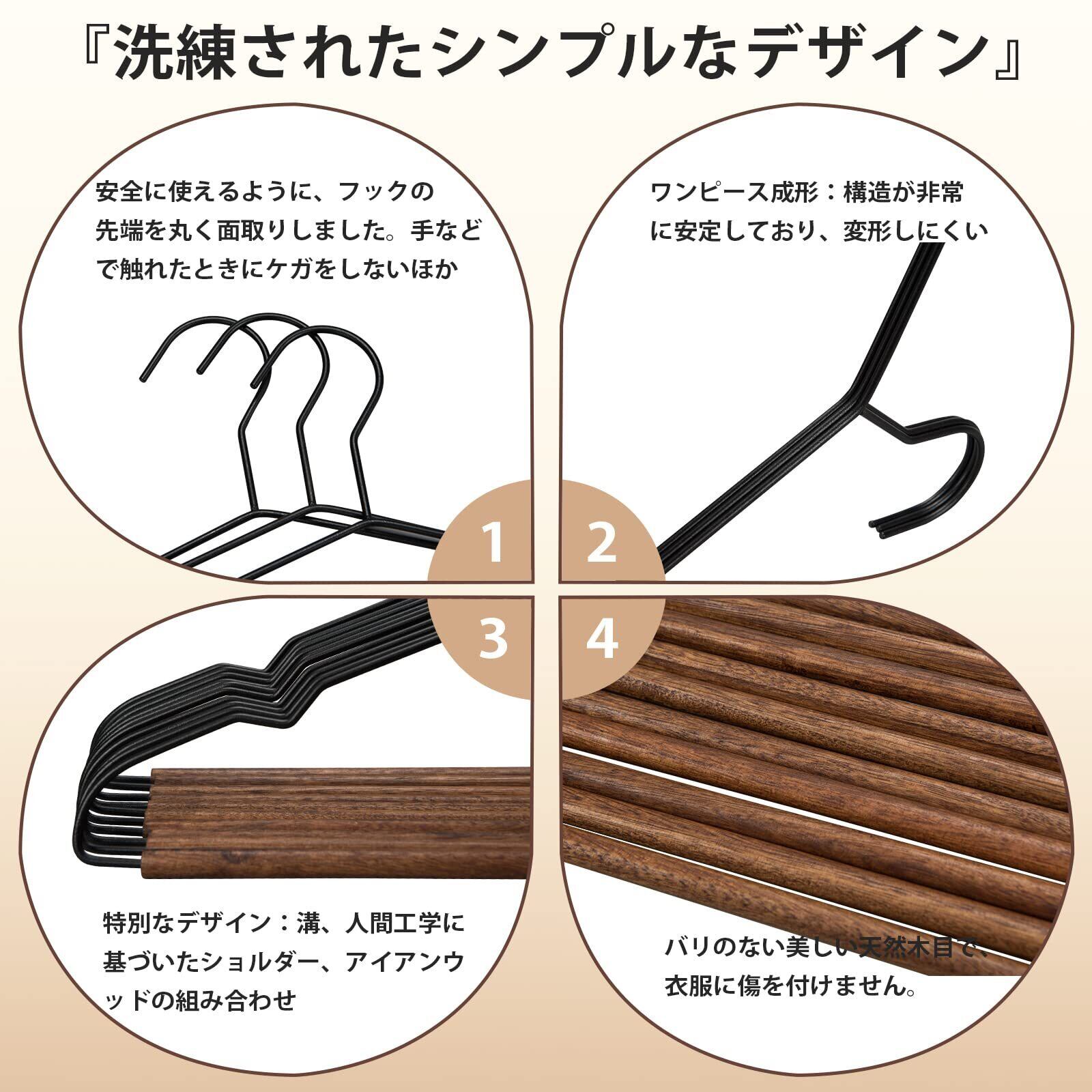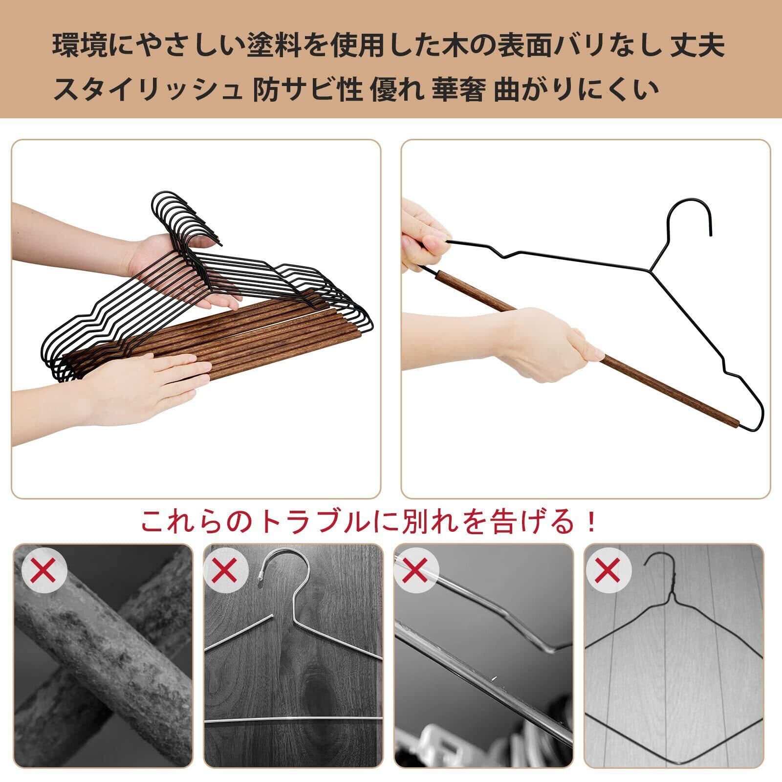 【高級なハンガー】高品質の木材と金属製、高品質で、スタイリッシュでエレガントなハンガーと家具が調和し、統一されたスタイルになります。注意深い紙やすりで磨き、環境に優しく、耐摩耗性のあるニスコーティングを施した後、ハンガーの表面にバリがなくなります。