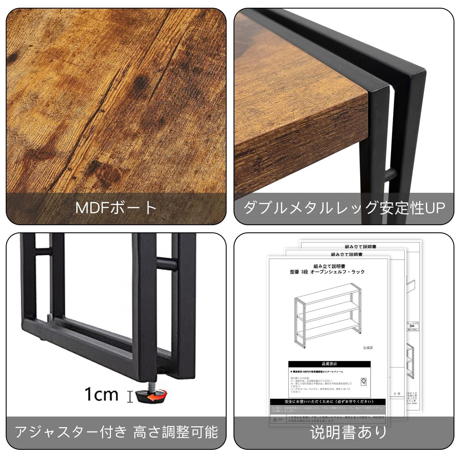 HCHQHS ラック オープンシェルフ 3段 木製 収納 本棚 オープンラック キッチンラック リビングラック 棚 おしゃれ 北欧 木目調 組立簡単 ディスプレイラック スチールラック 幅100cm