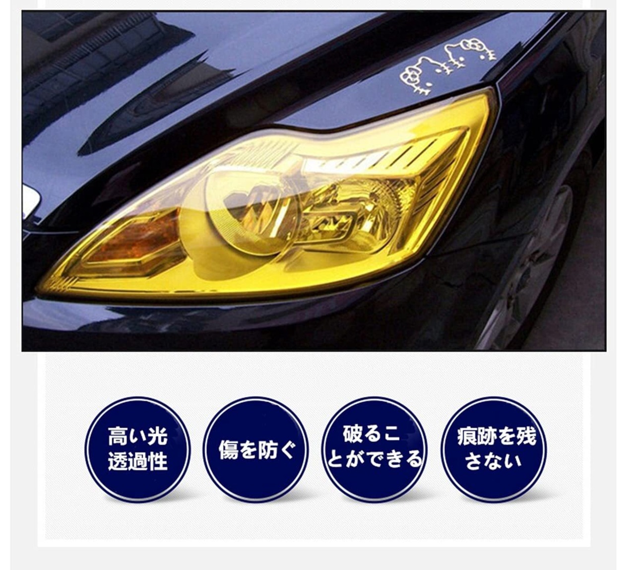 材質:PVC材質で良い透光性・耐候性・ストレッチ性に優れた素材となっております。車だけでなくオートバイのライトも使用できます。サイズ:30*120cm。