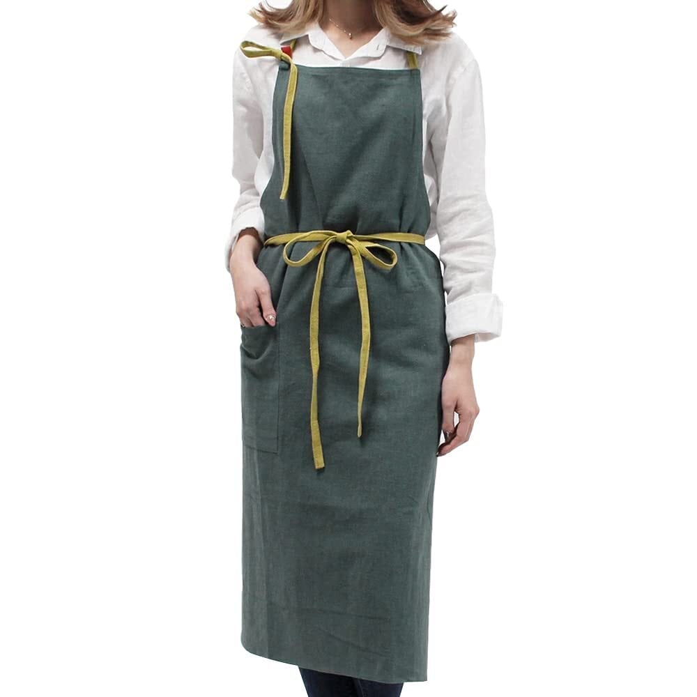 【衛生的、実用性にありリネンエプロン】リネン(麻)素材は、吸水性、通気性に優れ、発散性もある為、キッチン仕事に最適です!汚れも落ちやすく、お家でのお料理や洗い物はもちろん、ガーデニングや陶芸、飲食店やお花屋さんの制服など、様々な場面でお使いいただけます。