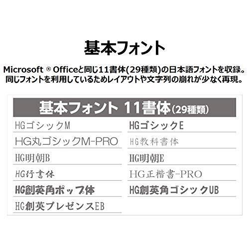他にも、Microsoft Officeと同じ11書体(29種類)の日本語フォントを収録。