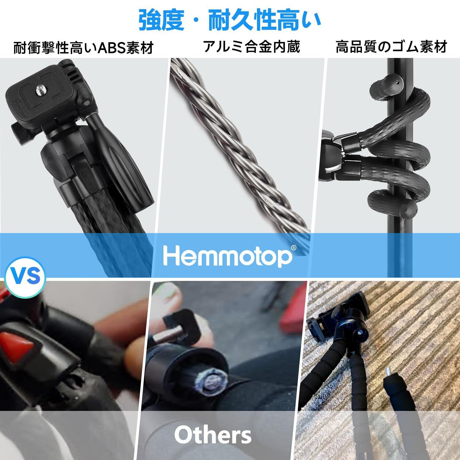 【耐久性・耐食性】くねくねミニ三脚は高強度・高弾性のゴムを採用して、頑丈で耐久性があります。海にでも使用可能で、防水で耐食性も強いです。くねくね三脚をお好きな形に繰り返して曲げても、折れしなく、長く愛用できます。