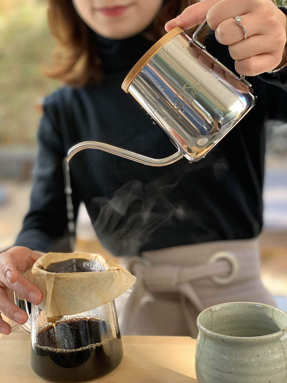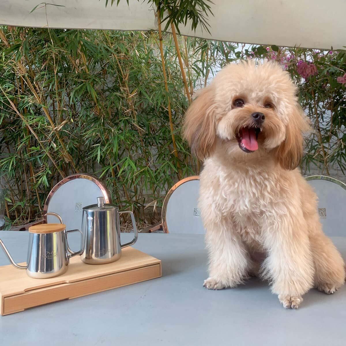 【蓋付き1人用 コーヒーポット】竹の蓋が付いたミニドリップポットは、見た目が可愛く、蓋をすることで、コーヒードリップケトルの保温性を高めることができます。使用していない場合、蓋はやかん内の灰落ちを防ぐことができます。