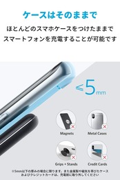 ケースはそのままで:Anker PowerWave 10 Standは、ほとんどのスマホケースをつけたままでスマートフォンを充電することが可能です(※5mm以下の厚みの場合に限ります。また金属製や磁気を帯びたケースおよびクレジットカードは、充電前に取り外してください)。