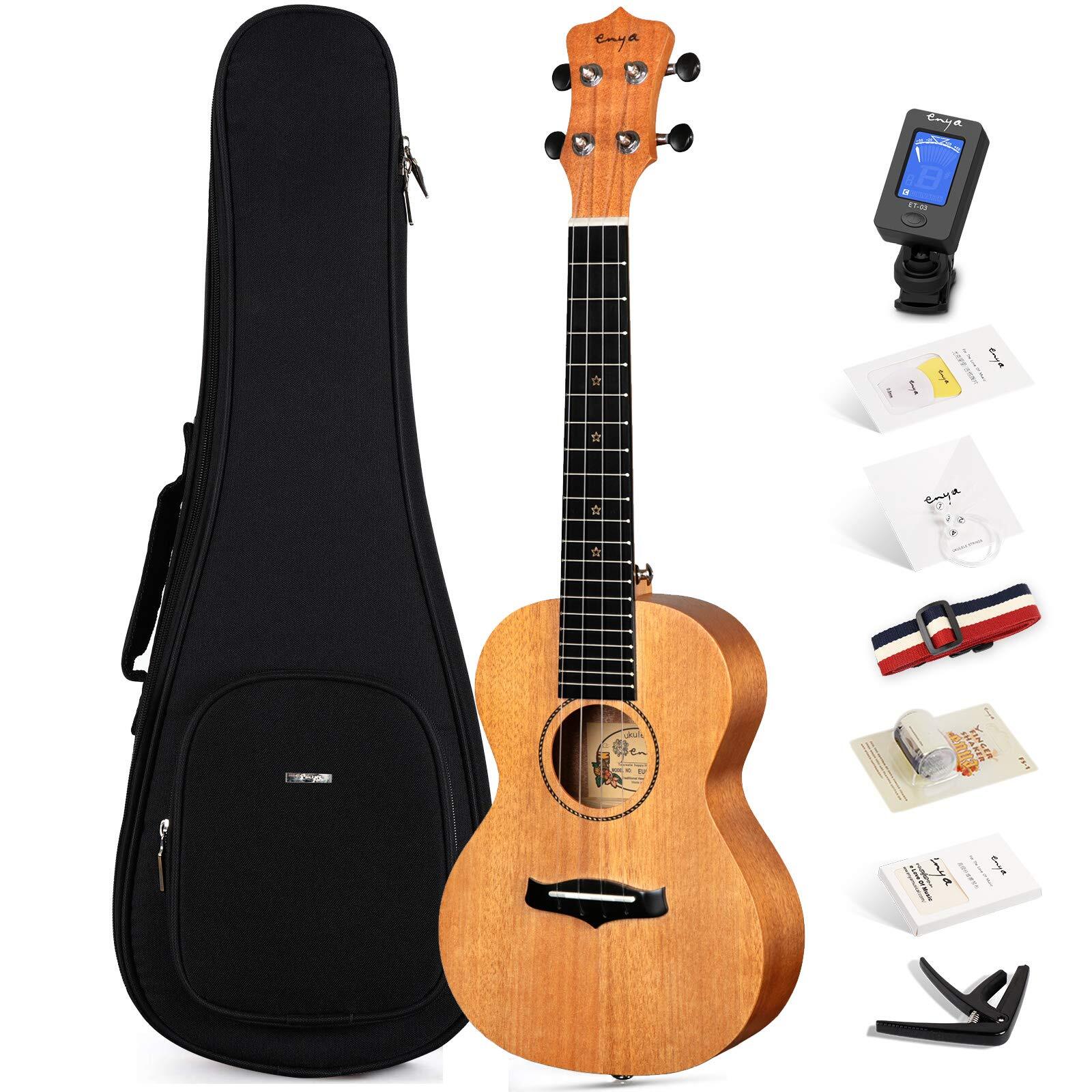 Enya コンサートウクレレEUC-25D マホガニー単板ウクレレ初心者セット23インチウクレレ収納バッグ,チューナー・ ストラップ・スペア弦等付属品一式