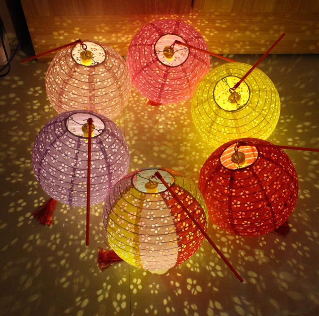 DUOLEIMI 提灯 お盆 紙ちょうちん 透かし彫り 紙提灯 お盆飾り LED付き 燈籠 カラフル 10個セット (丸型)
