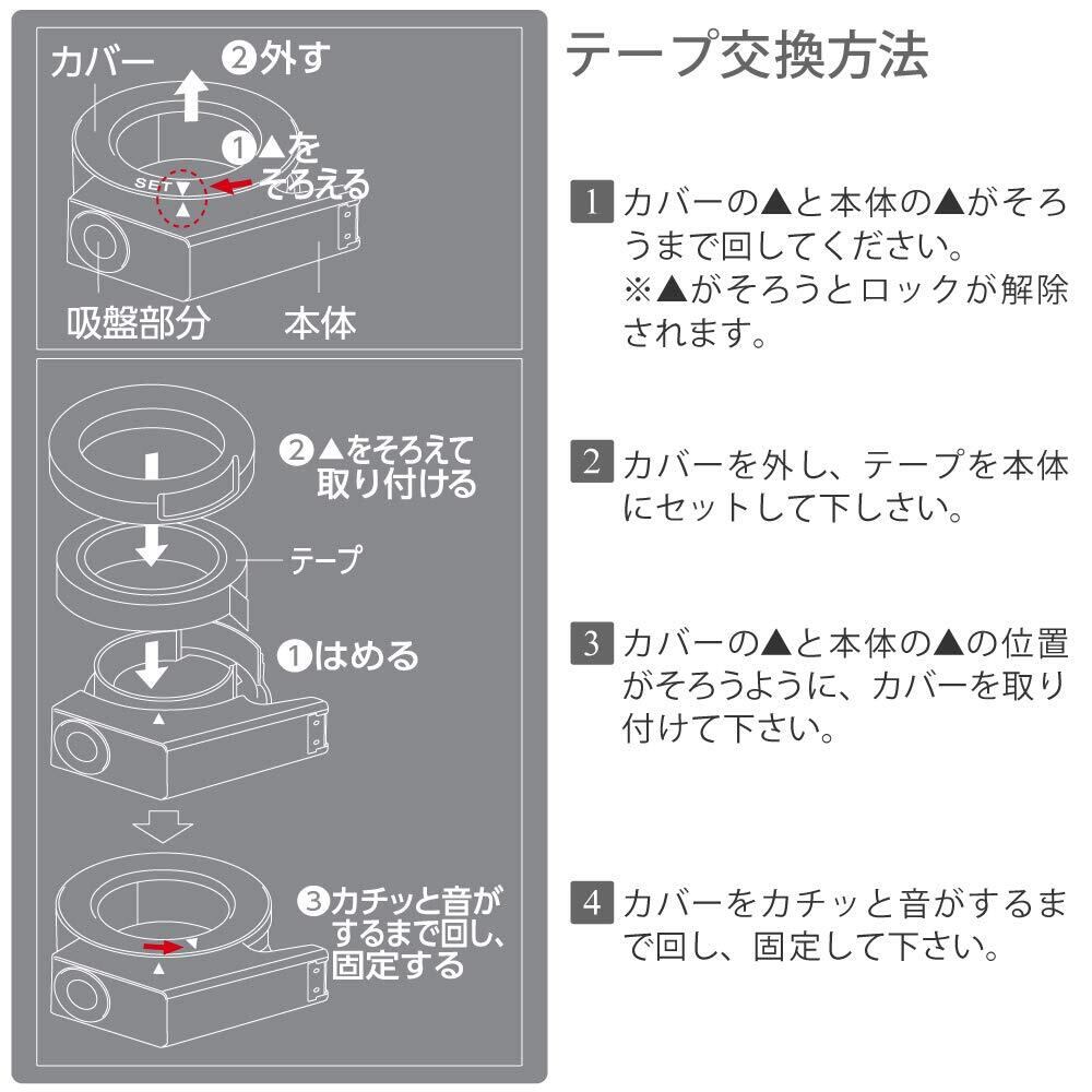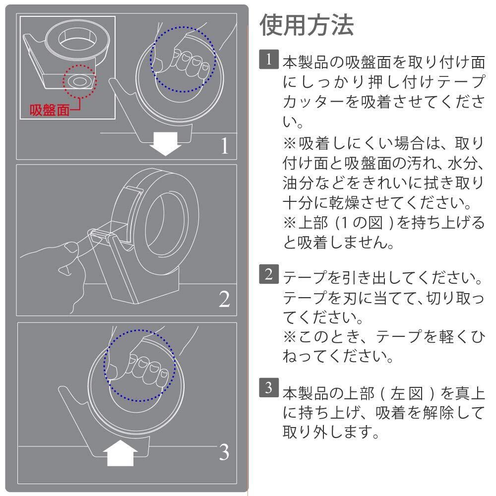 ・平らな水平面にテープの底面に配置した吸盤で固定することで、片手で軽くカットできます。