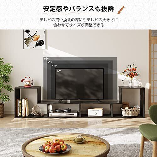 DEVAISE テレビ台 テレビラック テレビボード ローボード 伸縮 幅105~210cm 60インチまで対応 コーナー 収納ラック 2点セット 簡単組立 ブラック