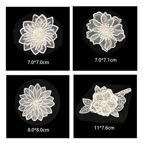 Sweetimes レース生地 刺繍花 縫製 DIY 服 工芸品の装飾 パッチ アップリケ モチーフ 10枚セット アイロン両面接着シート付No.16 (ホワイト10枚セット②)