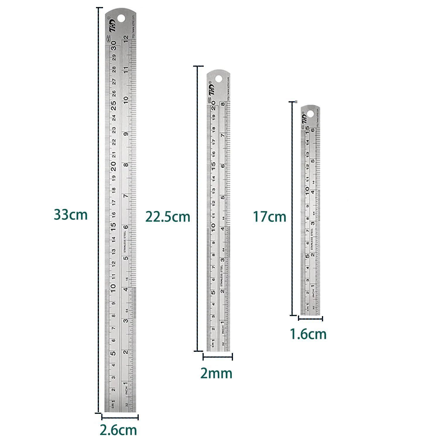 GOOMAND ステンレス定規 直線 定規 測定工具 両側 (センチメートル・インチ表示)30CM/12inch+20CM/8inch+15CM/6inch 測量用品 定規 文房具・オフィス用品 【3種セット】