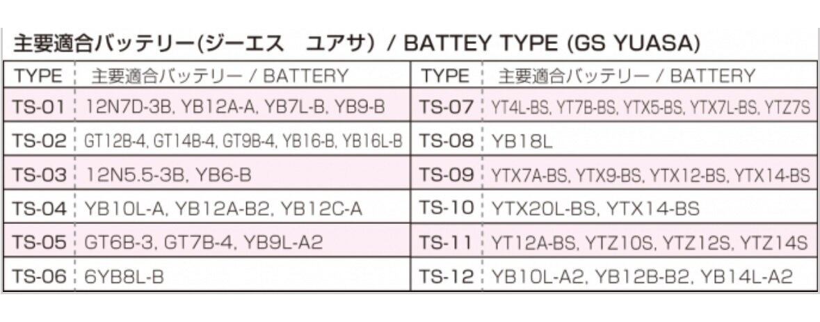詳しくはバッテリー適合表参照