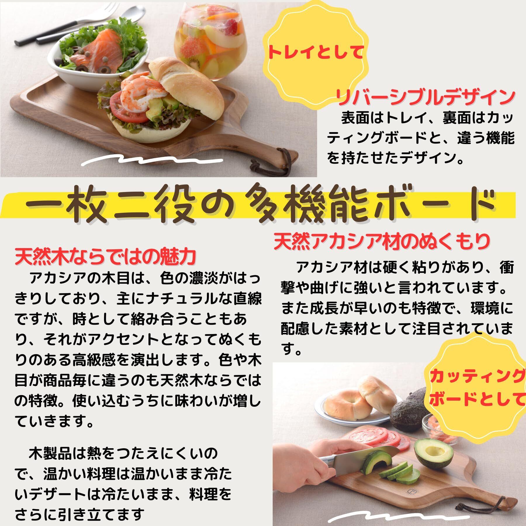 衝撃や曲げに強いアカシアのを使用したカッティングボード。食材を載せるだけでお洒落な雰囲気に