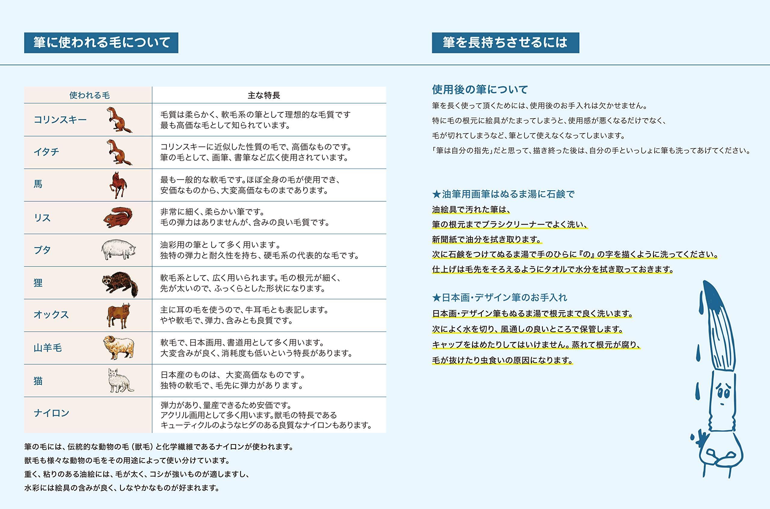 筆を長く使っていただく為には、使用後のお手入れは欠かせません。特に毛の根元に絵具がたまってしまうと、使用感が悪くなるだけではなく、毛が切れてしまうなど、筆として使えなくなってしまいます。