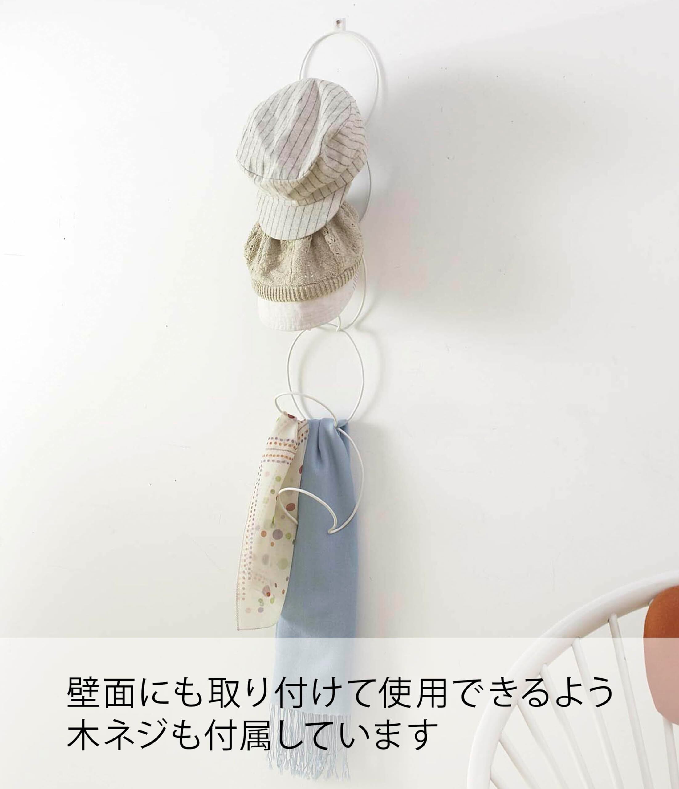 繋げて分けて組合せ自在。簡単連結! リングとリングを引っ掛けるだけ。帽子・スカーフ・小物雑貨をまとめて収納できる便利な連結ハンガー。