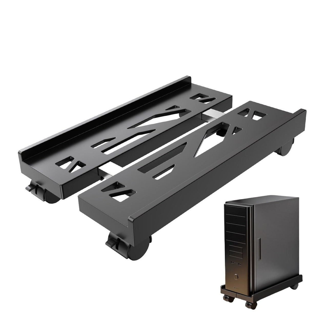 BESSTER CPUスタンド キャスター付き台車 PCワゴン デスト下PCスタンド PCカート サイズ調整可能CPUホルダー パソコンサーバーラック スクトップ用 落下防止 移動便利 足元収納 オフィス・自宅・会社用 サイズ40cm*22cm-30cm*9cm 黒