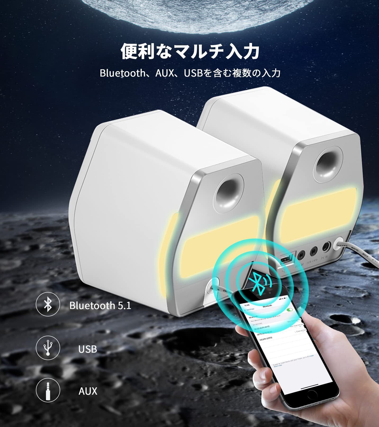 【幅広く互換性】ブルートゥース5.1/USBケーブル/3.5mm AUXケーブル3種類の接続に対応しています。3.5mmオーディオソケットはほとんどのコンピュータ、携帯電話、iPad、及びその他のデバイスに適用されます。USBケーブルは、コンピュータのUSBポート及び任意の5V充電電源に直接差し込むことができます。(USBと3.5mm AUXケーブルはパッケージに含まれています。)