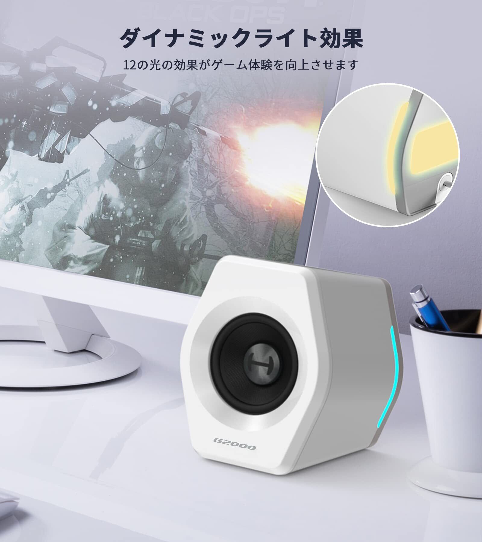 【カラフルなRGBライト】Edifierゲームスピーカーは素敵なRGBライトがつき、12色のライトは自由に切り替えます。全体の形はとてもクールで、雰囲気作りに最適、ゲーム/音楽/映画をお楽しみます。