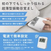 【枕の下に入れて使う】主に目覚まし機能を使いたい時は枕の下に入れて使います。設定した時刻になるとブルッブルッと震えて起こしてくれます。超薄型・コンパクト設計なので浮き出たり、寝ている時も不快感がありません。