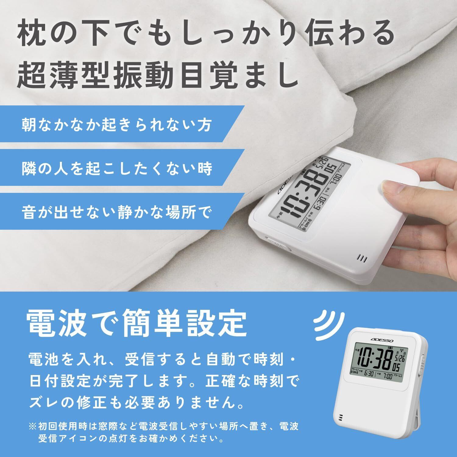 ADESSO(アデッソ) 目覚まし時計 振動式 電波時計 電波 強力 多機能 マルチ 2way スクエアブルブルクラッシュ NEW 電池 ワイヤレス ダブルアラーム バックライト タイマー ストップウォッチ スヌーズ機能付き 薄い 正確 コンパクト 大画面 ディスプレイ デジタル ホワイト