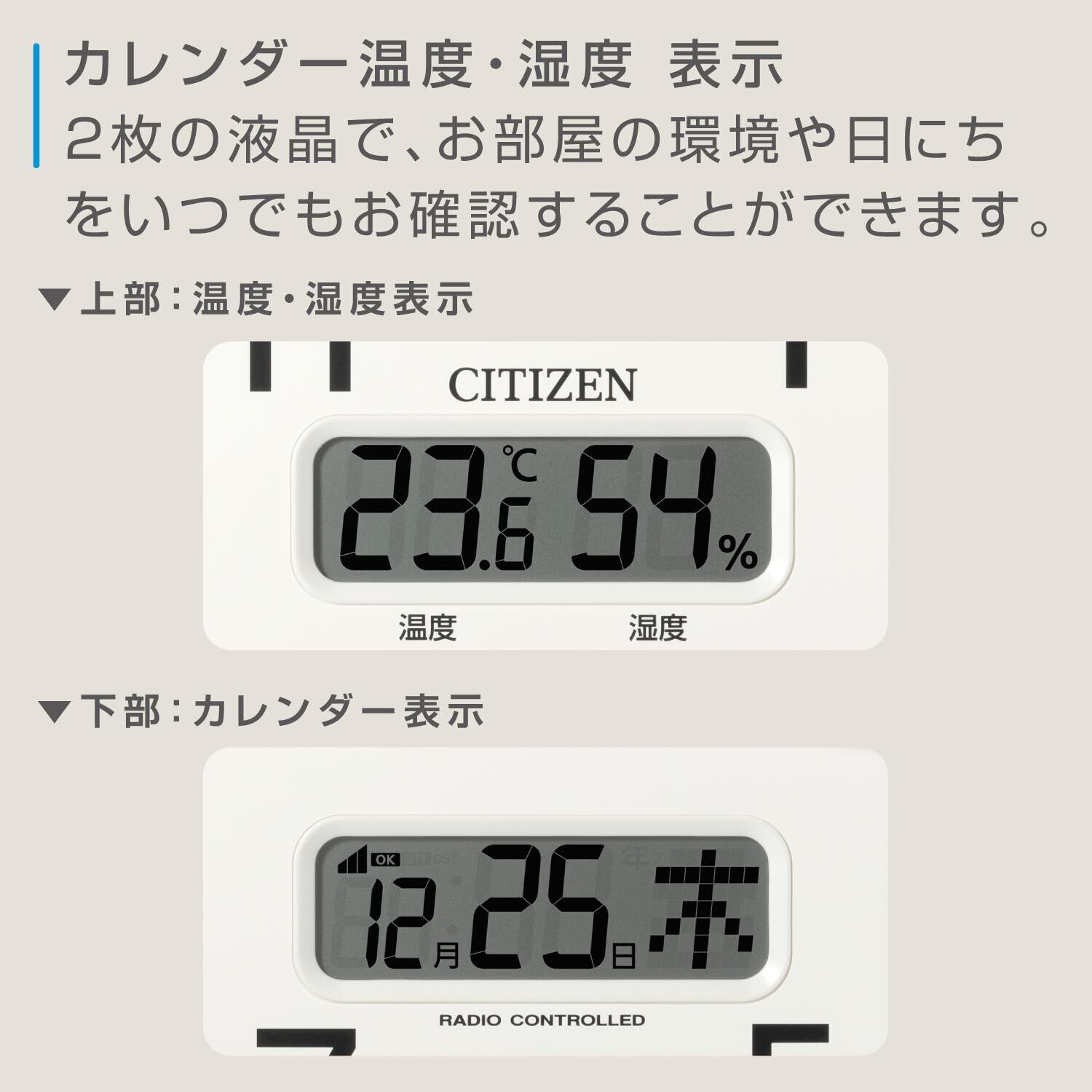 【くらしに便利な温湿度・カレンダー付き】文字板のデジタル液晶で、お部屋の状態(温度/湿度)や日にちを確認することができます。