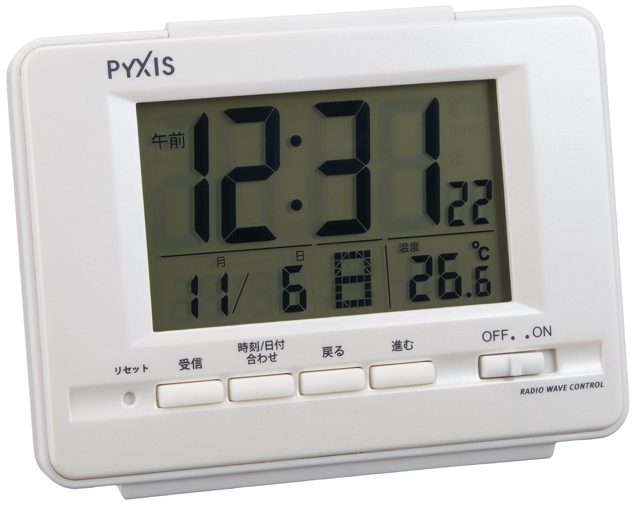 セイコークロック(Seiko Clock) セイコー クロック 目覚まし時計 電波 デジタル カレンダー 温度 表示 PYXIS ピクシス 白 パール NR535H SEIKO