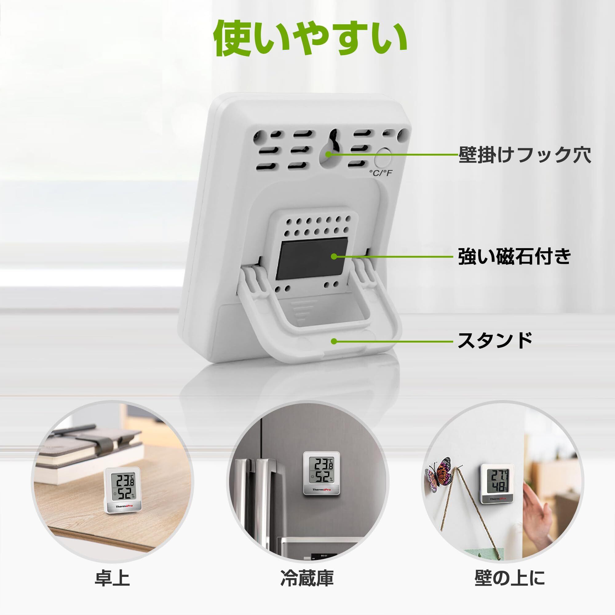 ThermoProサーモプロ 湿度計 温度計 温湿度計 湿度計室内 大画面 コンパクト 顔マーク 壁掛け 卓上スタンド マグネット TP-49