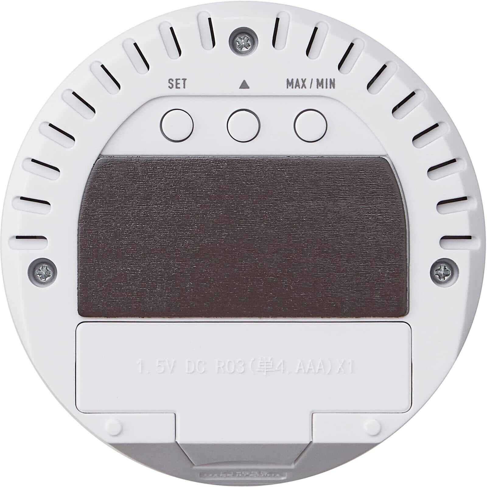 測定範囲:温度/-5.0~50.0度・湿度/20~95%、過去の最高/最低温湿度表示、時計表示、快適度表示、マグネット付き
